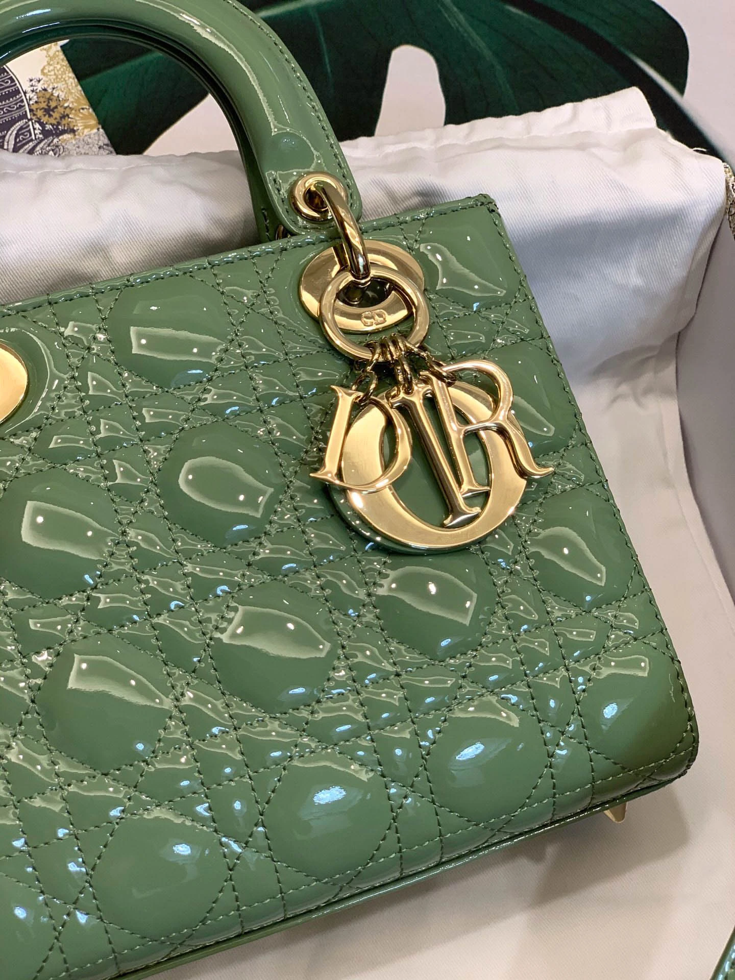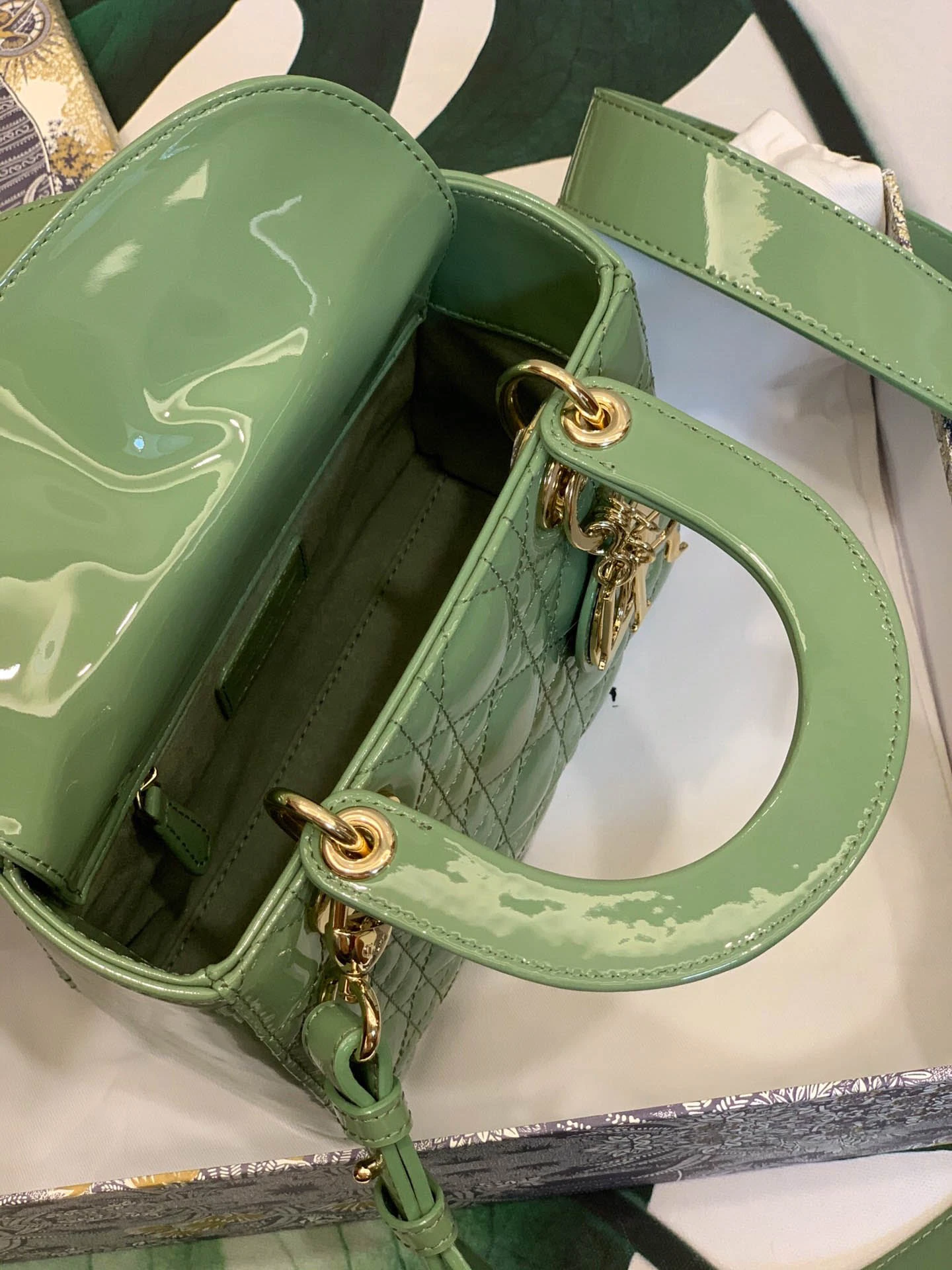 ABCDior Calf Patent Leather Rattan Check Handbag Size:20 x 16.5 x 8cm