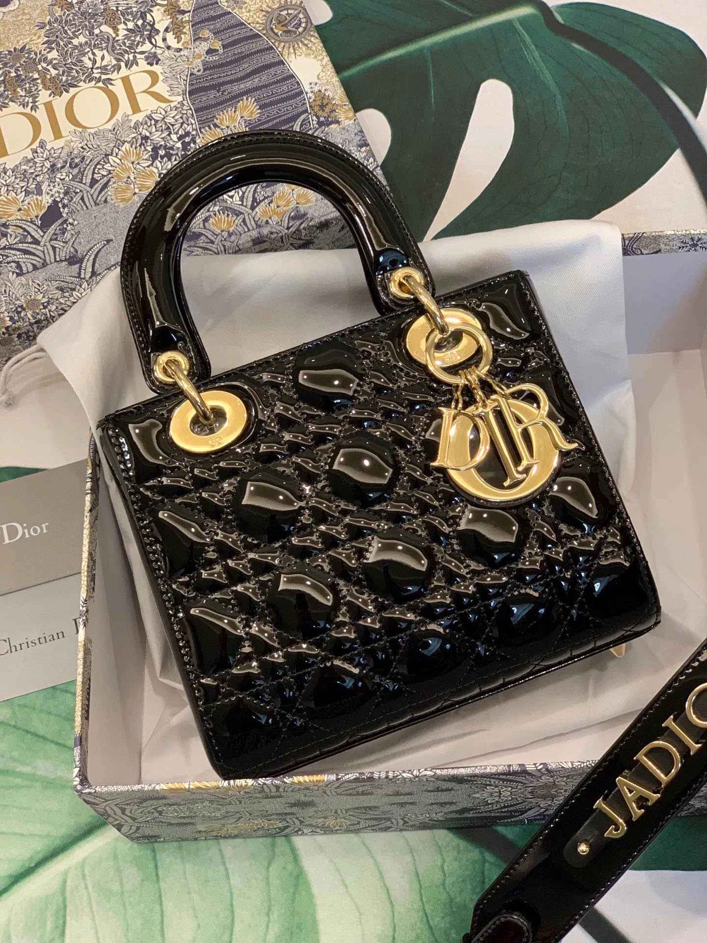 ABCDior Calf Patent Leather Rattan Tote Size: 20 x 16.5 x 8cm