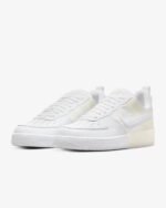 - The Nike Air Force 1 React shoes’ (black or white) rubber outsole with translucent accents adds traction and durability.