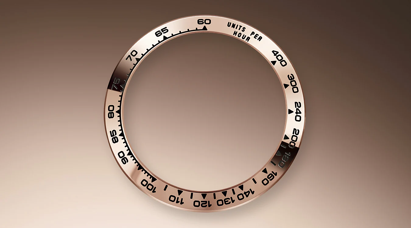 With its tachymetric scale, its three counters and its pushers, the Cosmograph Daytona was designed to be the ultimate timing tool for endurance racing drivers. The bezel features a tachymetric scale to read average speed over a given distance based on elapsed time. This scale offers optimal legibility, making the Cosmograph Daytona the ideal instrument for measuring speeds up to 400 units per hour, expressed in kilometres or miles.