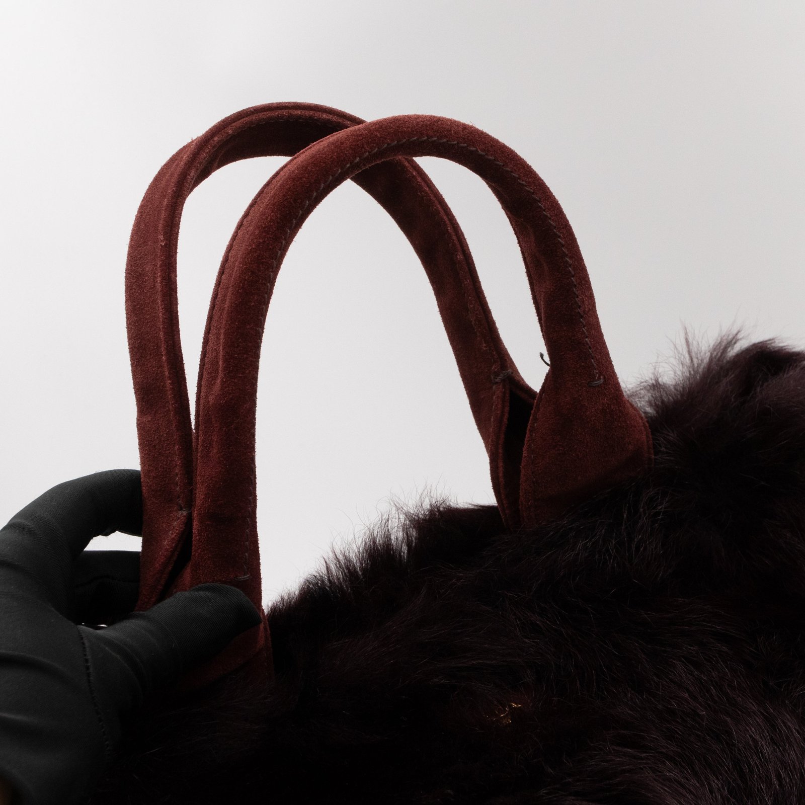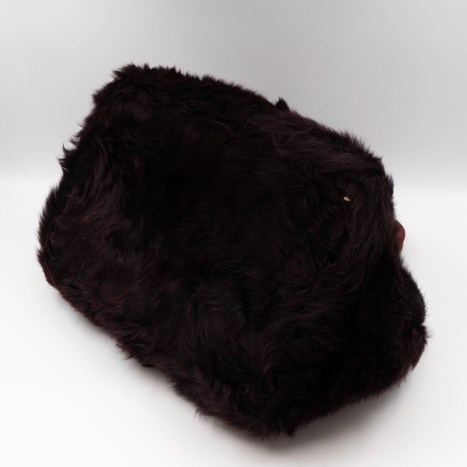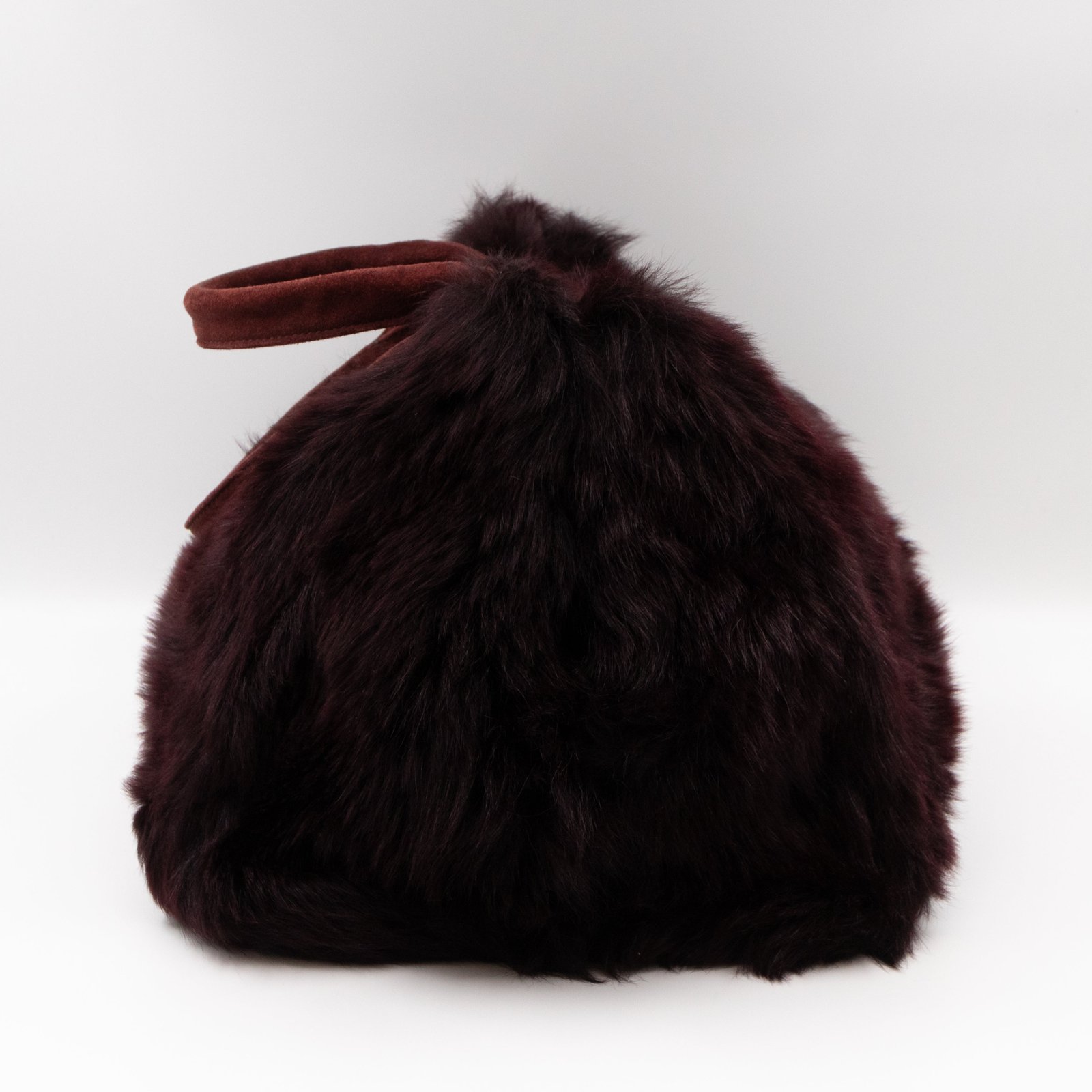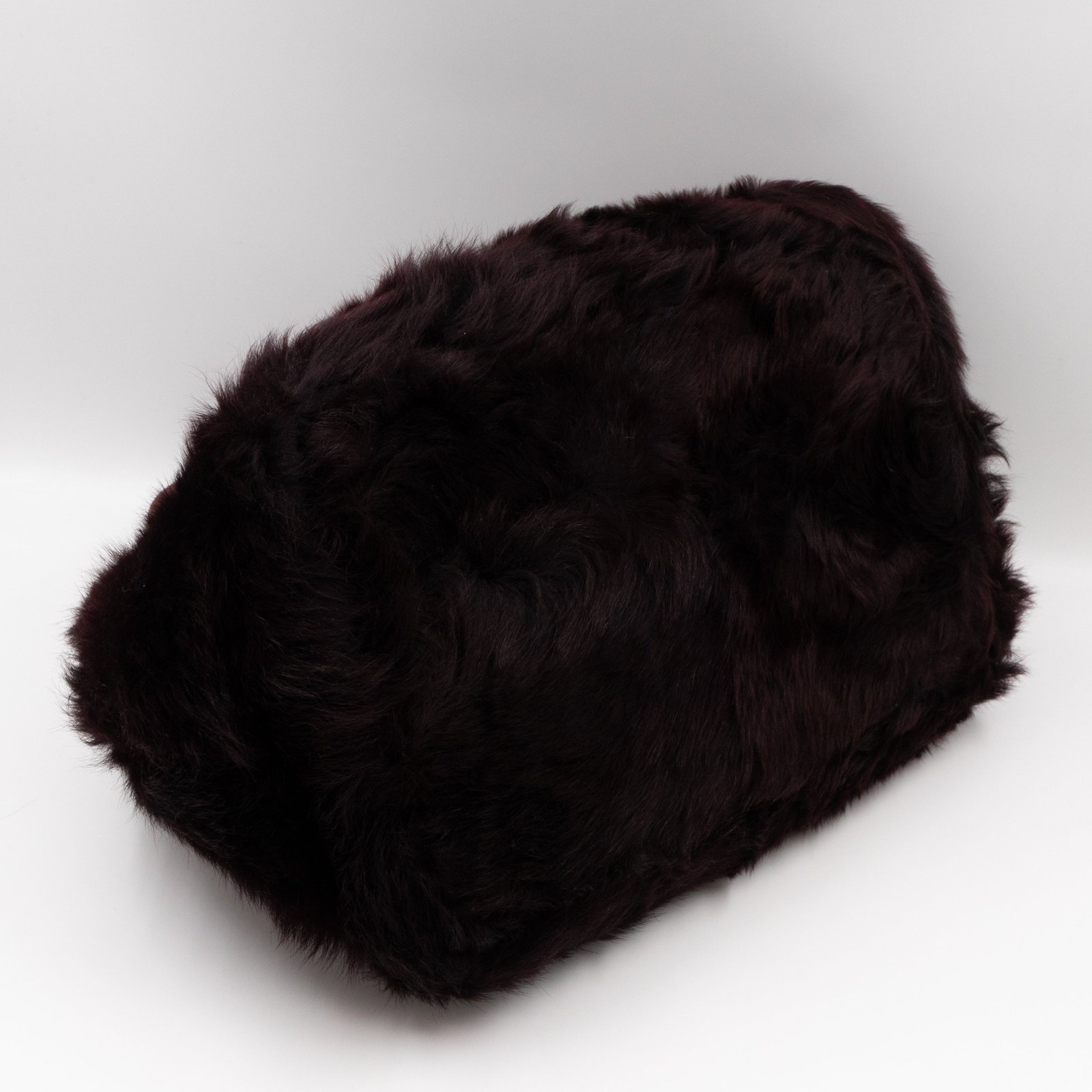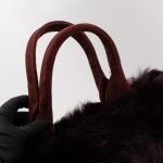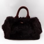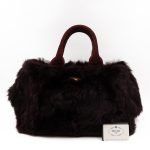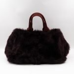 This is a Prada Eco Lapin faux fur hand bag. This soft hand bag is made in burgundy eco-friendly faux fur and suede leather trim with gold-tone hardware. The bag features a Prada triangle logo on the front and dual rolled suede leather handles. This top opens with a magnet to a compartment one zipper pocket and two small slim pocket. Easy to use with documents, iPad, and all daily items.