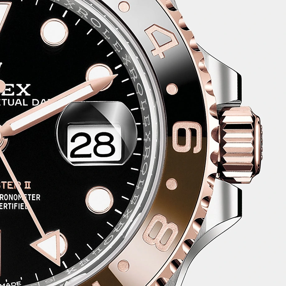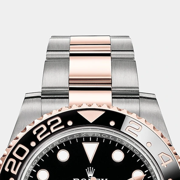 THE OYSTER PERPETUAL GMT-MASTER II IN OYSTERSTEEL AND EVEROSE GOLD WITH AN OYSTER BRACELET.
