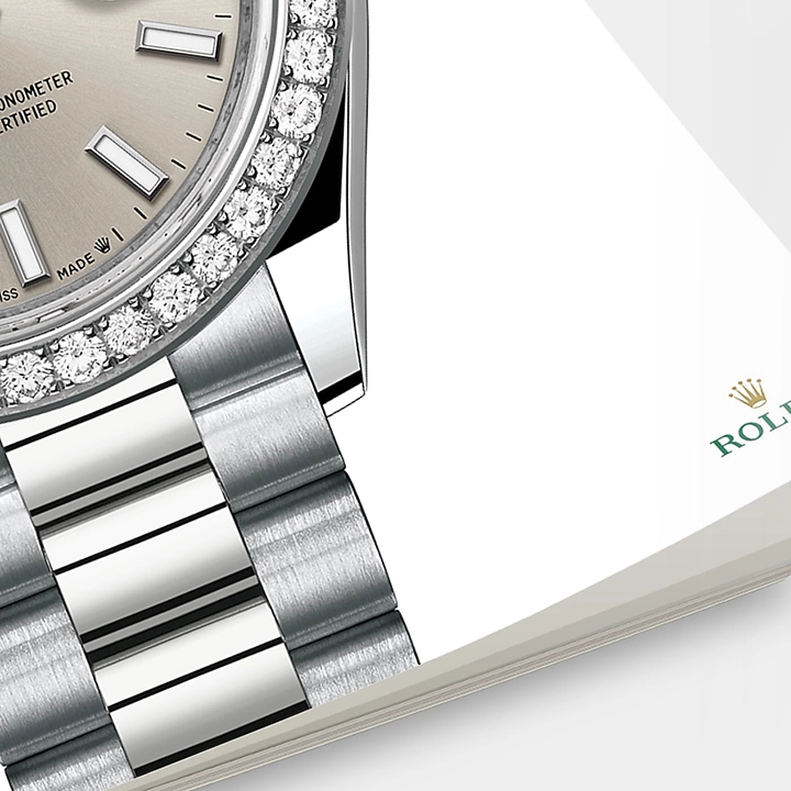 - Oyster, 28 mm, white gold and diamonds