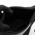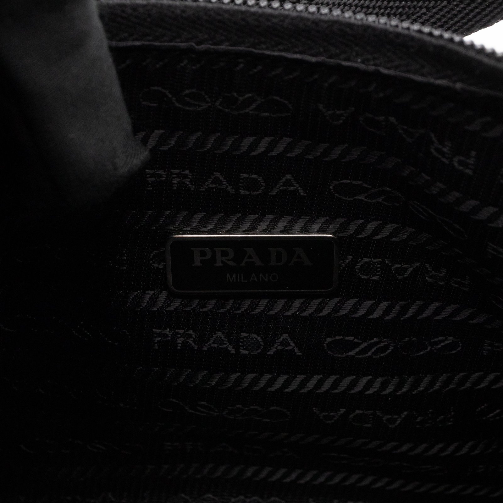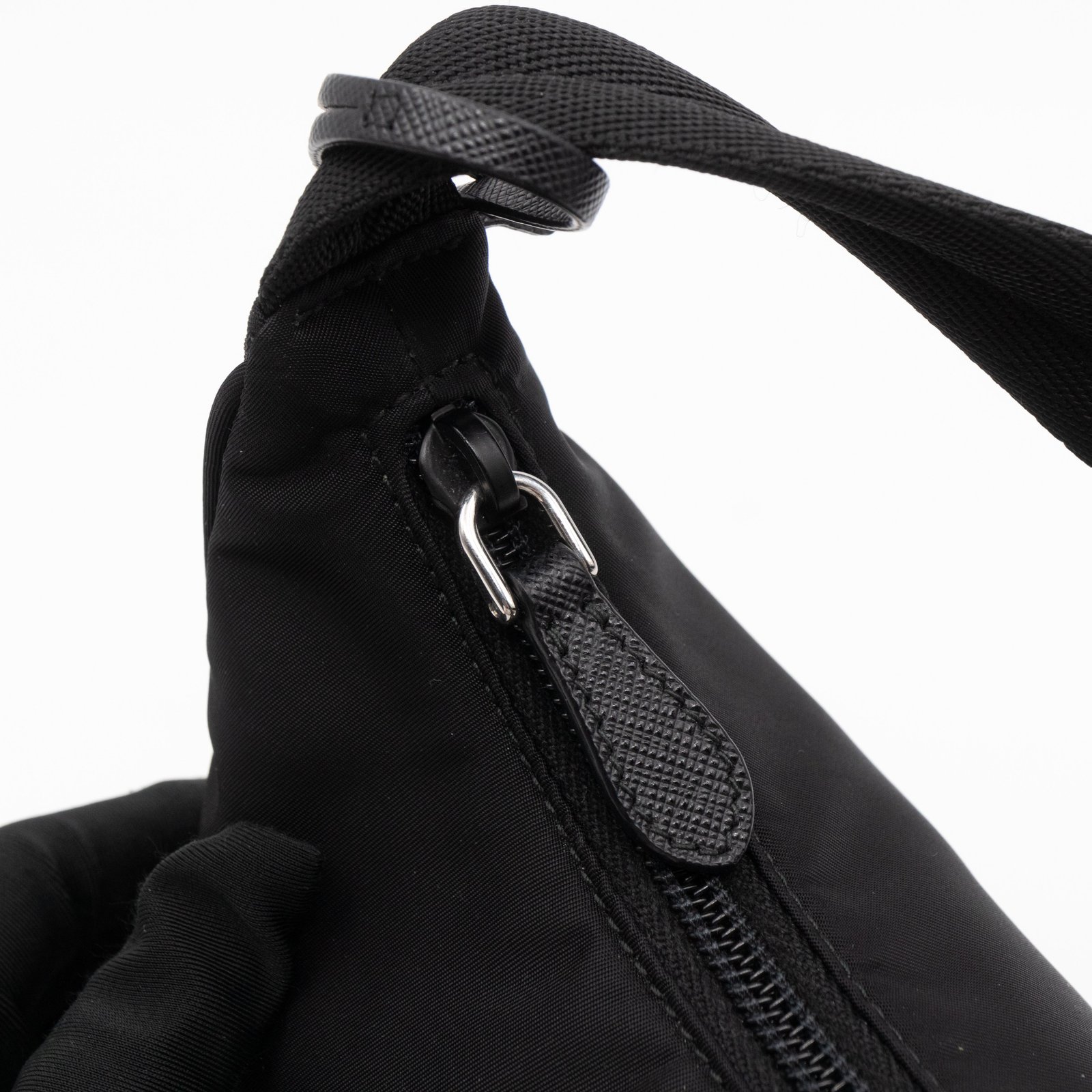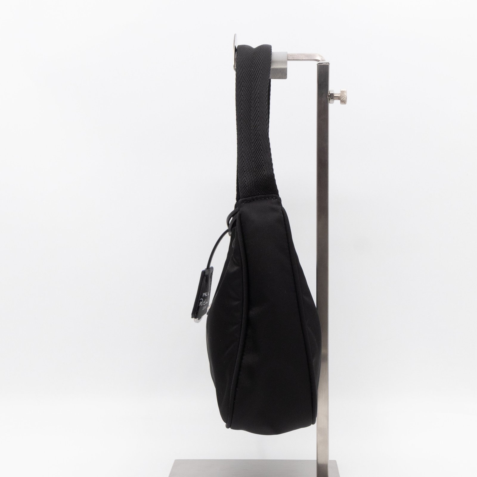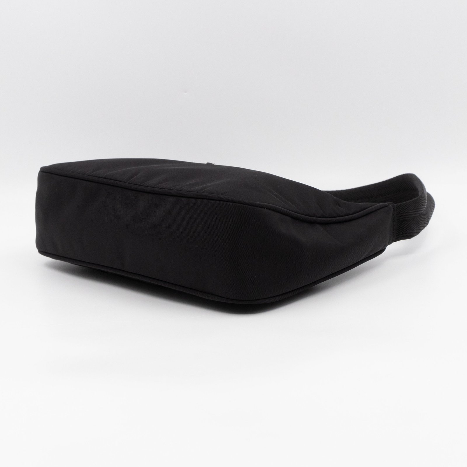 This is a Prada Tessuto Nylon Mini Re-Edition 2000. Made of sturdy black tessuto nylon with silver hardware. This bag features a nylon shoulder strap and the top zipper opens to a black jacquard fabric interior. Inside fits phone like iPhone Pro Max size and your daily essentials. This mini sized Prada 2000 can be shoulder carried only, only the larger 2005 can be used crossbody. Current retail price is €920.