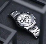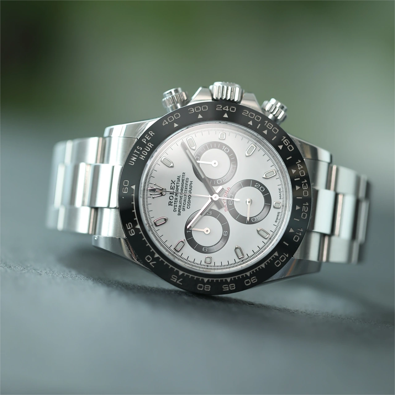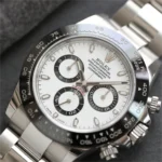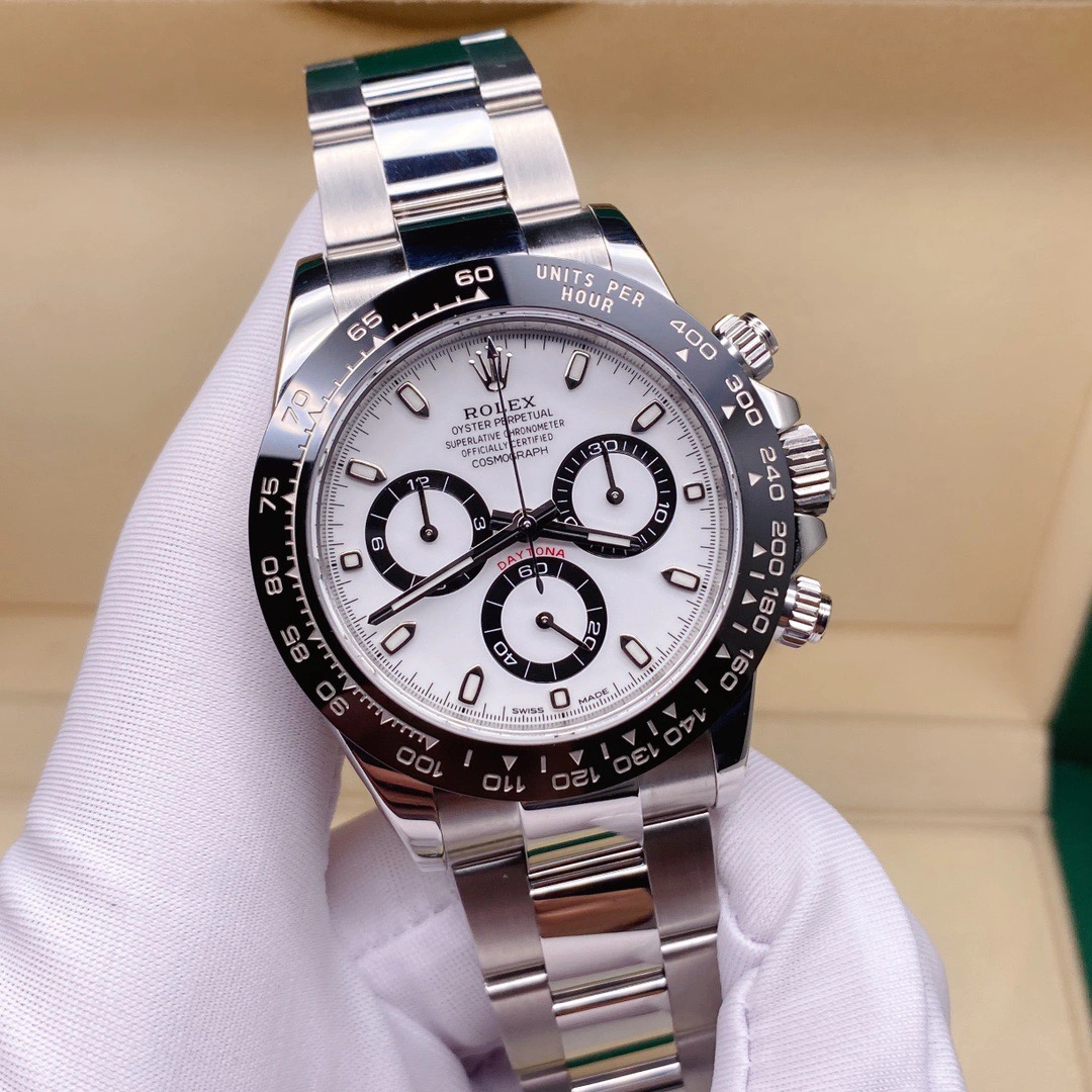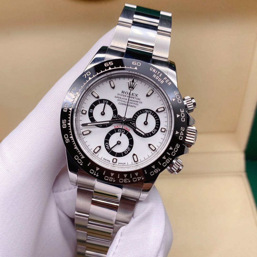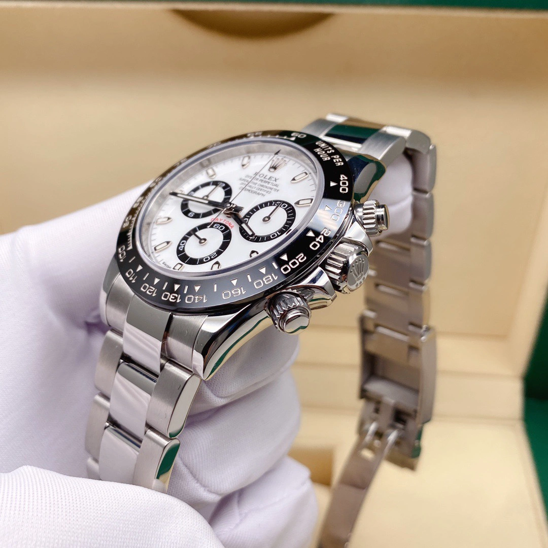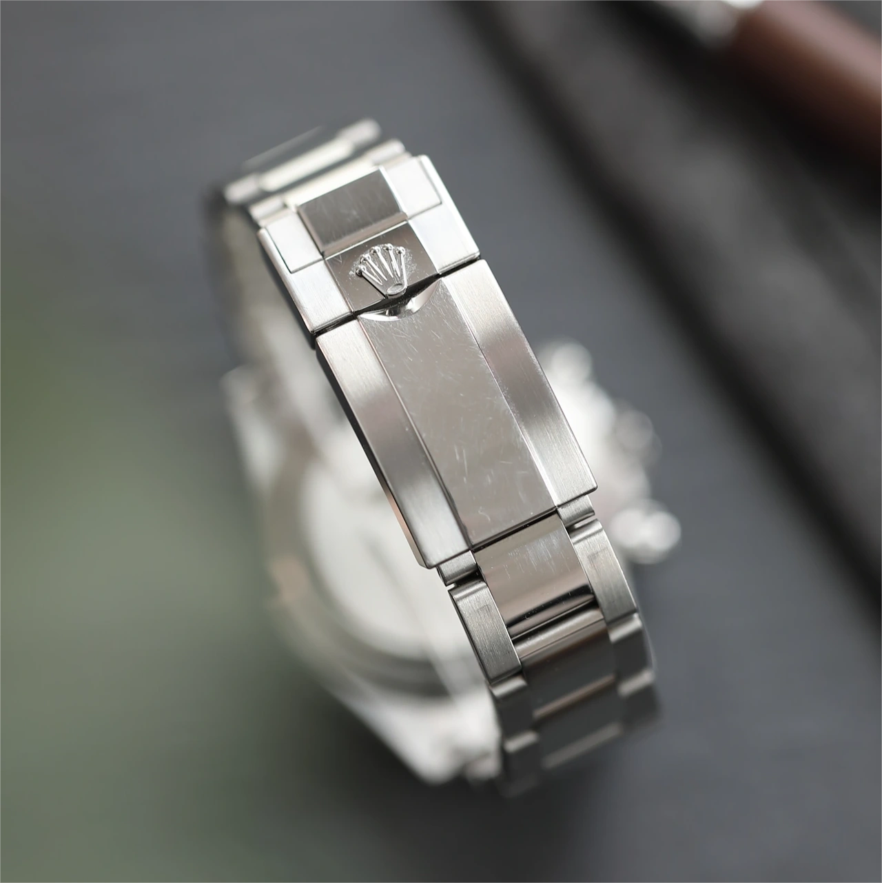 The chronograph function of the Daytona watch can be activated by pressing the button, and the button can be tightened like a winding crown when it is not needed to ensure that it is waterproof to a depth of 100 meters. The timepiece can be started, stopped or redesigned with a light press. The advanced technology makes the moment of pressing the button a crisp sound.Â