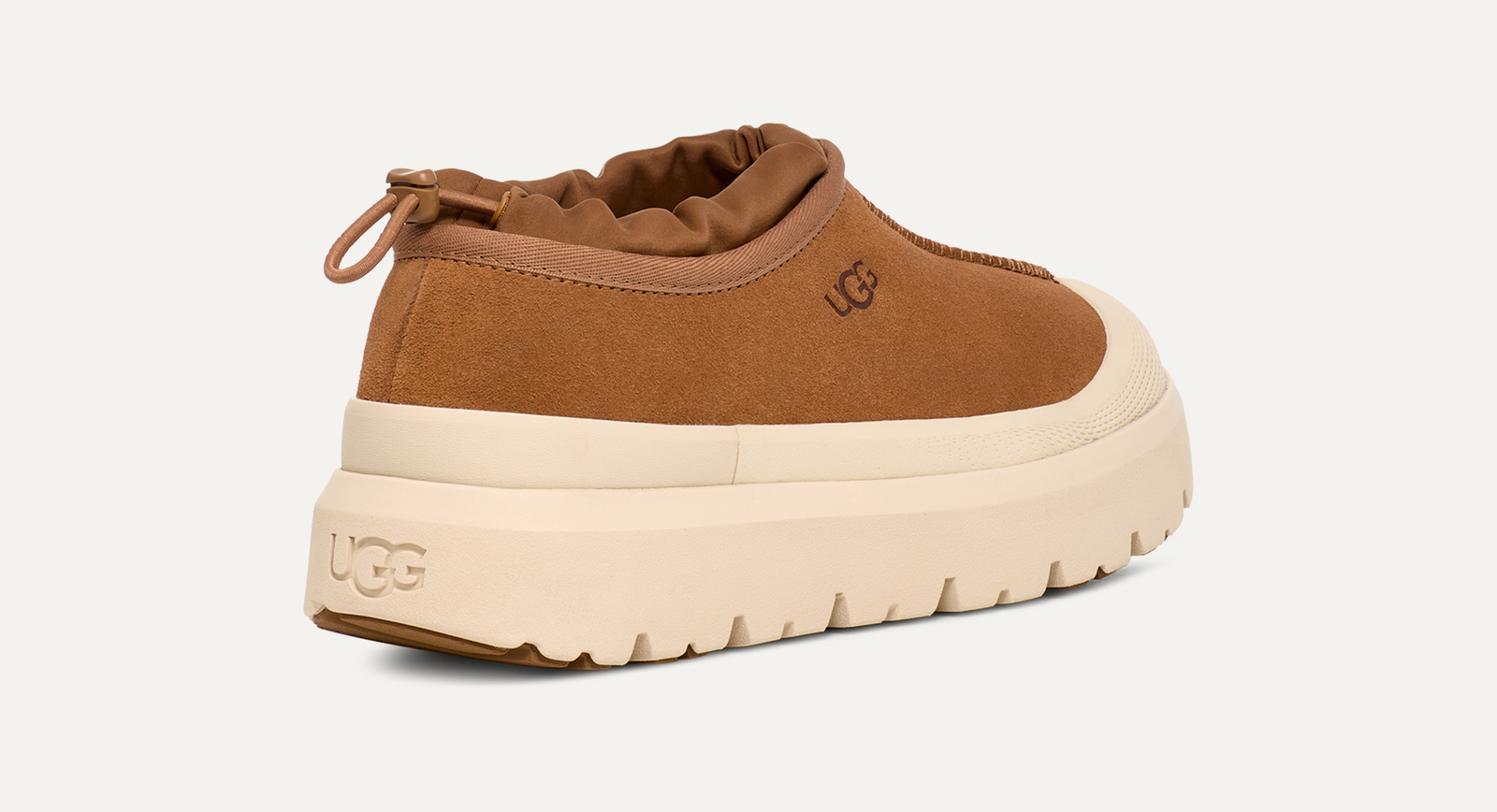 Who (and we can’t stress this enough) wants to take a walk in the drizzle with us? We can always count on the Tasman Weather Hybrid to travel with us outdoors, even if its a little wet out there. Featuring waterproof suede and seam-sealed construction as well as our cozy UGGplushâ„¢ upcycled wool lining, the Tasman Weather Hybrid offers a light, slipper feel with an easy slip-on silhouette. The outsole is made from renewable, rainwater-nourished sugarcane and features a permanent galosh for wet conditions.